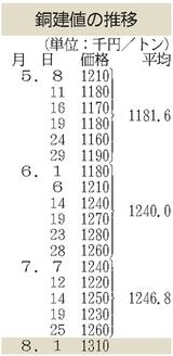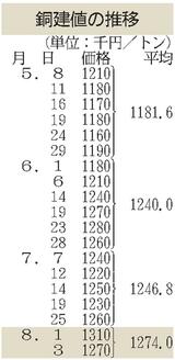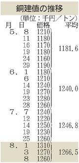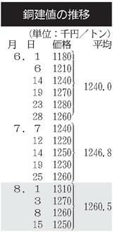 関口冨美雄商店/8月の店頭販価/りん青銅は18~25円高