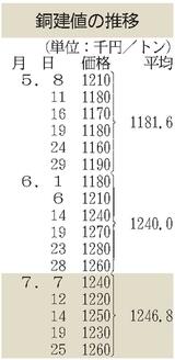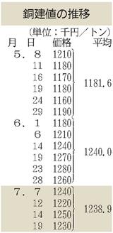 黄銅棒原料購入値/12円下げの854円/日本伸銅