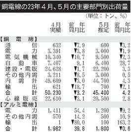 銅電線出荷/5月、4%増の4万5400トン/車用大幅増で8カ月ぶり増