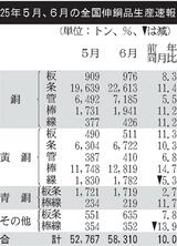 伸銅品の6月生産量/10%増、5万8310トン/AI・データセンター向け増