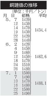 建値/JX金属、銅2万円上げ/三井金属、亜鉛2万1000円上げ