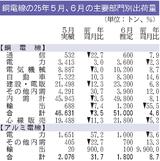 25年上期の銅電線出荷5%減、28万7090トン/主力の建設・電販分野低調