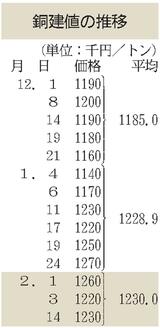 建値/JX金属、銅3万円上げ/三井金属、亜鉛6000円上げ
