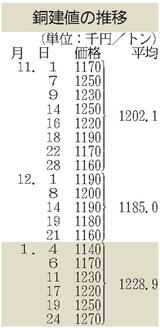 黄銅棒原料購入値/24円下げの890円/日本伸銅