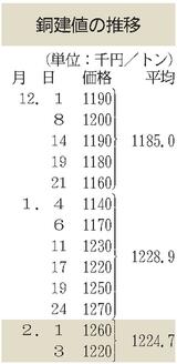 12月の銅電線出荷/微減、5万3300トン/輸出向け除き減少