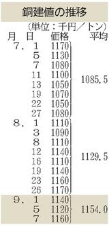 黄銅棒原料購入値/12円上げの884円/日本伸銅