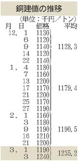 建値/JX金属、銅3万円上げ/三菱マテ、鉛6000円上げ