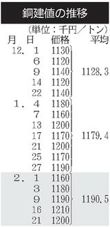 黄銅棒原料購入値/6円下げの868円/日本伸銅