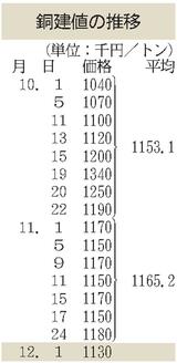 建値/JX金属、銅1万円下げ/三井金属、亜鉛3000円下げ
