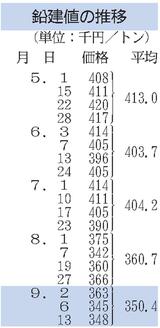建値/三菱マテ、鉛3000円上げ/三井金属、亜鉛2万1000円上げ