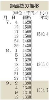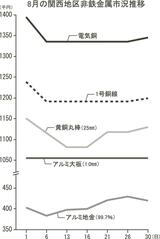 非鉄月間市況/8月/関西地区/銅類、上旬に下落/アルミ地金は下旬に一段高
