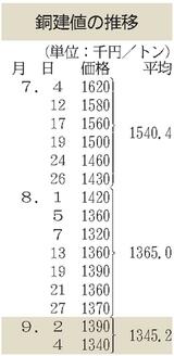 非鉄月間市況/8月/関東地区/電気銅・1号銅線4カ月ぶり安値圏/円急伸、国内価格押し下げ