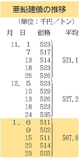 三井金属、亜鉛建値9000円下げ