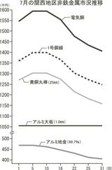 非鉄月間市況/7月/関西地区/銅類、海外安や円高で急落/アルミ地金も軟化・続落