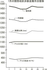 非鉄月間市況/7月/関西地区/銅類、高値圏を維持/アルミ大板も一段高