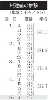 非鉄月間市況/4月/関東地区/銅類が最高値更新/電気銅建値150万円超に