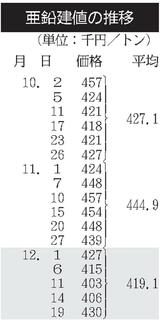 二次合金メーカー/中部地区の原料買値/12月後半、5~10円下げ