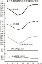 非鉄月間市況/2月/関西地区/銅類、下旬に反発/アルミ地金はレンジ内横ばい
