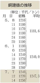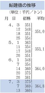 建値/JX金属、銅3万円上げ/三井金属、亜鉛9000円上げ