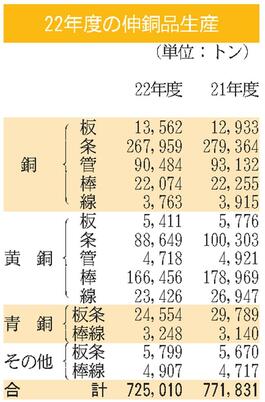 22年度の伸銅品生産/6%減、72万5010トン/下期に自動車・半導体向け低迷