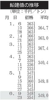 建値/JX金属、銅2万円上げ/三井金属、亜鉛6000円上げ