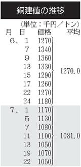 二次合金メーカー/中部地区の原料買値/7月後半、上物5円下げ