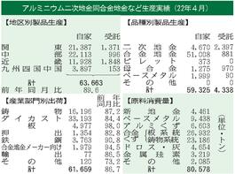 アルミ二次合金生産/4月は10%減、6万3663トン