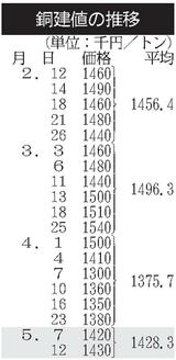 黄銅棒原料購入値/12円上げの993円/日本伸銅