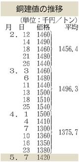 建値/JX金属、銅4万円上げ/三井金属、亜鉛1万8000円上げ