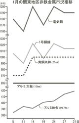 非鉄月間市況/1月/関東地区/銅・アルミ、3カ月ぶり高値圏/製品価格も一段高に