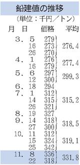 二次合金メーカー/11月後半積み原料買値/関東地区、最大10円下げ