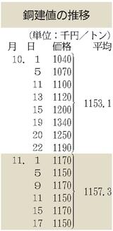 黄銅棒原料購入値/13円下げの818円/日本伸銅