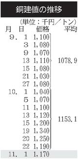 建値/JX金属、銅2万円下げ/三井金属、亜鉛3000円上げ