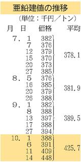 アルミ二次合金/10月後決め販売価格/20円以上唱え上げへ