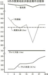 非鉄月間市況/9月/関東地区/電気銅、下旬に乱高下/アルミ地金は右肩上がり