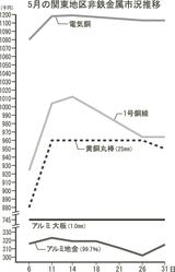 非鉄月間市況/5月/関東地区/電気銅、上旬に最高値/アルミ地金、下落も持ち直し
