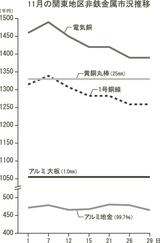 非鉄月間市況/11月/関東地区/電気銅、1号銅線弱含み/アルミ地金は高値圏維持