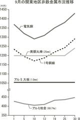 非鉄月間市況/9月/関東地区/電気銅・アルミ地金、急反発/中国景気刺激策などで国際相場一段高