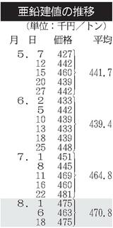 三井金属、亜鉛建値1万2000円上げ