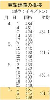 黄銅棒原料購入値/14円下げの1019円/日本伸銅