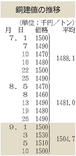 JX金属、銅建値1万円下げ