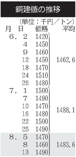 大阪/銅・黄銅屑/銅系のみ大幅上伸