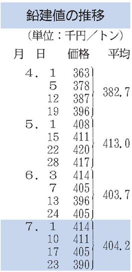 建値/三菱マテ、鉛1万5000円下げ/三井金属、亜鉛1万8000円下げ
