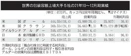 世界の包装容器上場大手5社/10~12月期、クラウン除き増益/米欧の飲料缶需要好調
