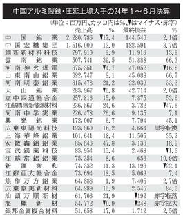 中国のアルミ製錬・圧延大手24社/1~6月期純利益、18社増益/市況改善と内需回復で