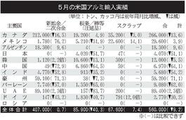 米国のアルミ輸入/5月は9.2%減、56万トン