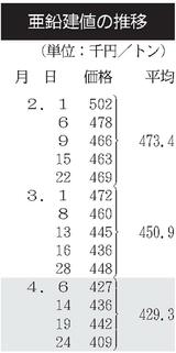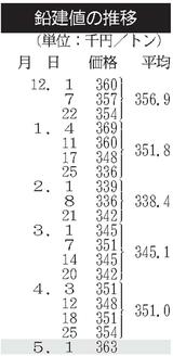 建値/JX金属、銅2万円下げ/三菱マテ、鉛3000円上げ