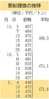 三菱マテ、鉛建値1万2000円下げ