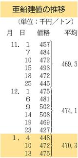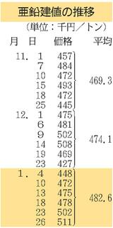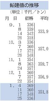 建値/JX金属、銅1万円下げ/三菱マテ、鉛1万2000円下げ