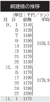 建値/JX金属、銅3万円下げ/三菱マテ、鉛6000円上げ/三井金属、亜鉛3万円下げ